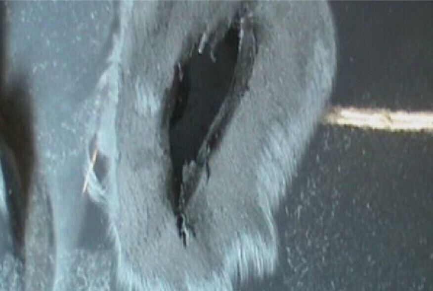 步驟7:對熔植的無銹加固網周圍進行簡單的打磨,以增強其表面的附著力,便于后續進行玻纖膠條覆蓋的操作,如圖1-7所示。