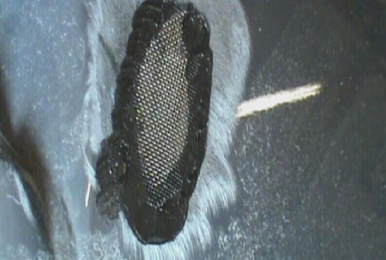 步驟6:把無銹加固網的周圍熔植在塑料件上,熔植要有一定的深度以使其牢固,要避免在后續的打磨中使邊角裸露,如圖1-6所示。